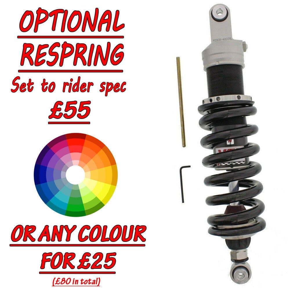 Our shocks come as standard set to a 12-15 stone rider. We can set up the shocks with a lighter or heavier spring for just £55 extra